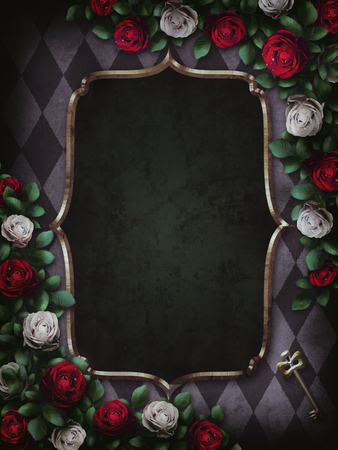 不思議の国のアリス 赤いバラと白いバラ チェスの背景に バラの花のフレーム 不思議の国の背景 図 の写真素材 画像素材 Image